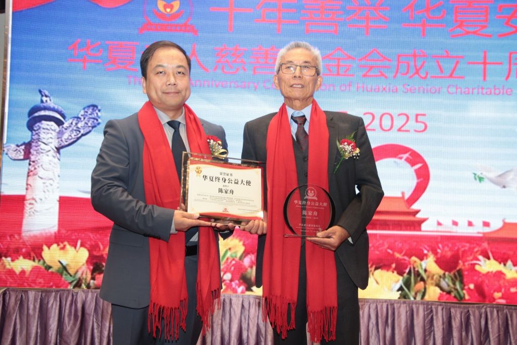 - 陈家舟先生 捐款$10000 刀,凭借长期对基金会的深耕与此次慷慨捐赠,获颁 “华夏终身公益大使” 称号;